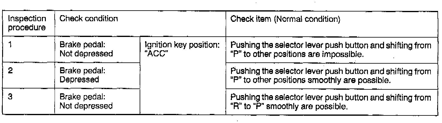 2. When the above operations are defective, adjust the shift lock cable as follows: