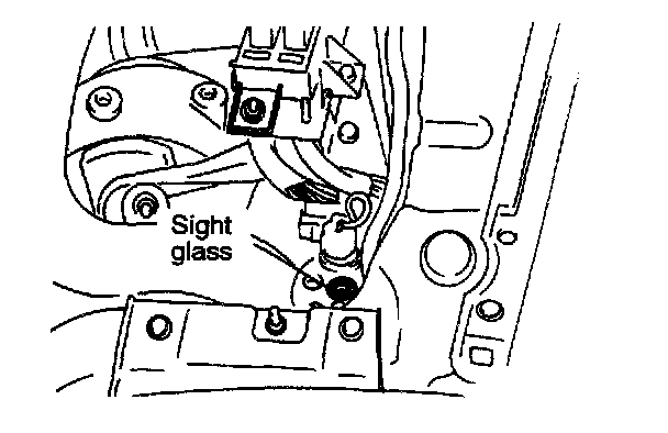 The sight glass is a refrigerant level indicator. To check the refrigerant level, clean the sight glass and start the vehicle engine. Push the air conditioning button to operate the compressor, place the blower switch to high and move the temperature control lever to MAX. COOL. After operating for a few minutes in this manner, check the sight glass.