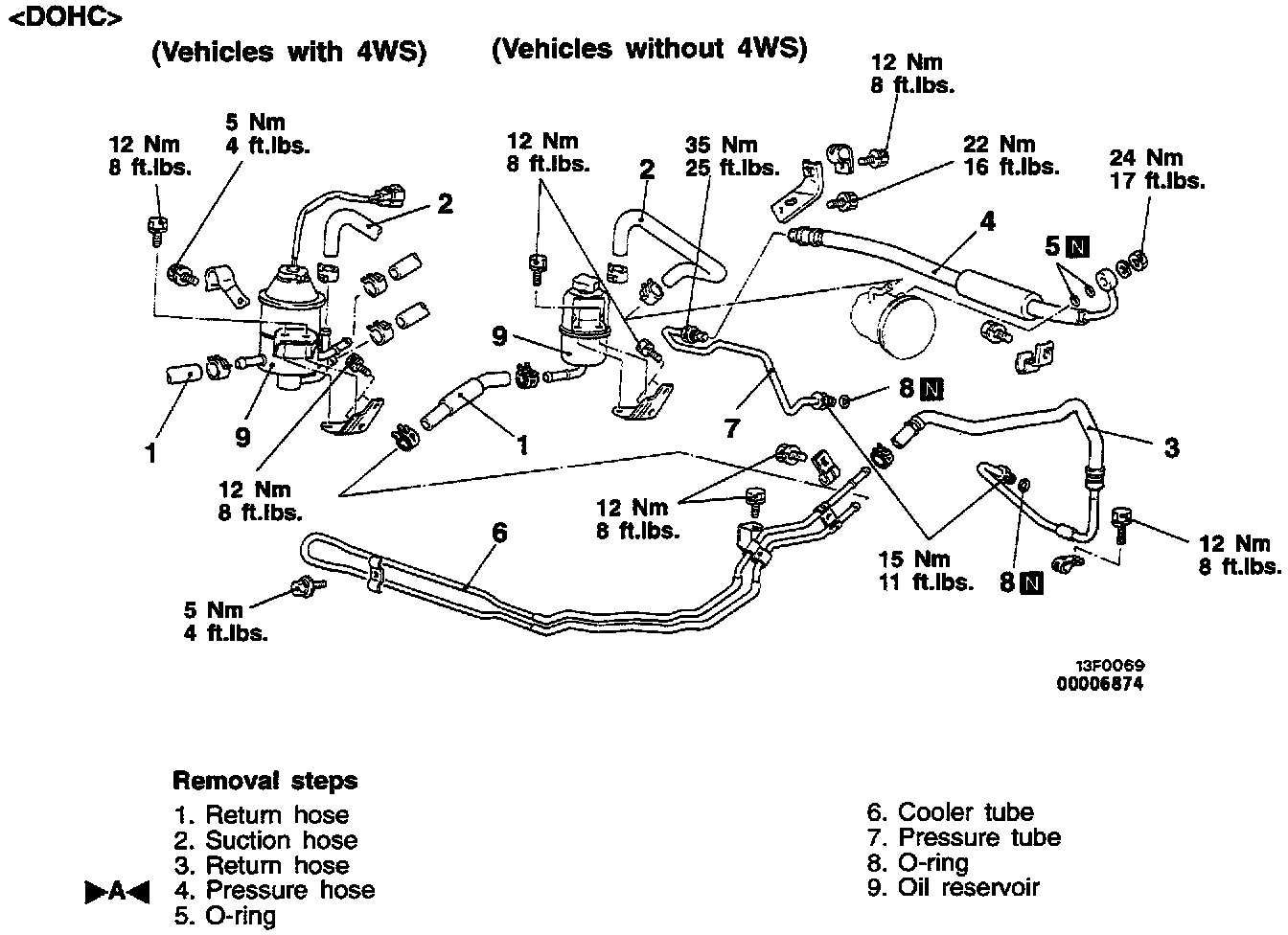 1. Connect the pressure hose so that its slit part contacts the oil pump's guide bracket.
