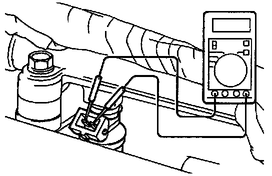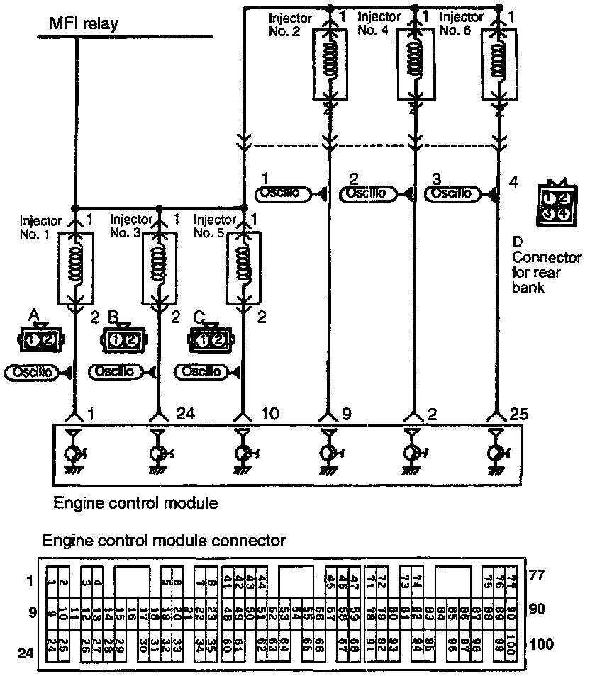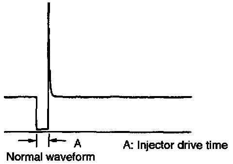 (2) Connect the probe to the oscilloscope pick-up point as shown in the circuit diagram and check the waveform at the drive side of each injector.