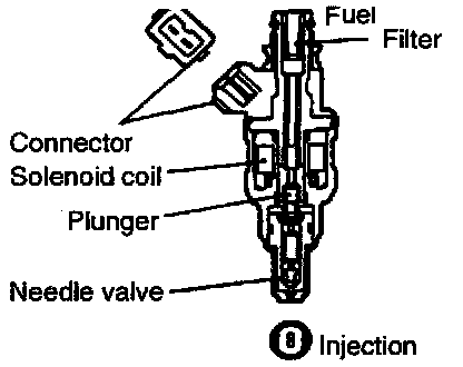 - The injector has a fixed nozzle opening area and the fuel pressure against manifold inside pressure is regulated to a fixed level. Therefore, the volume of fuel injected by the injector is determined by the time during which the needle valve is open, namely, by the time during which the solenoid coil is energized.