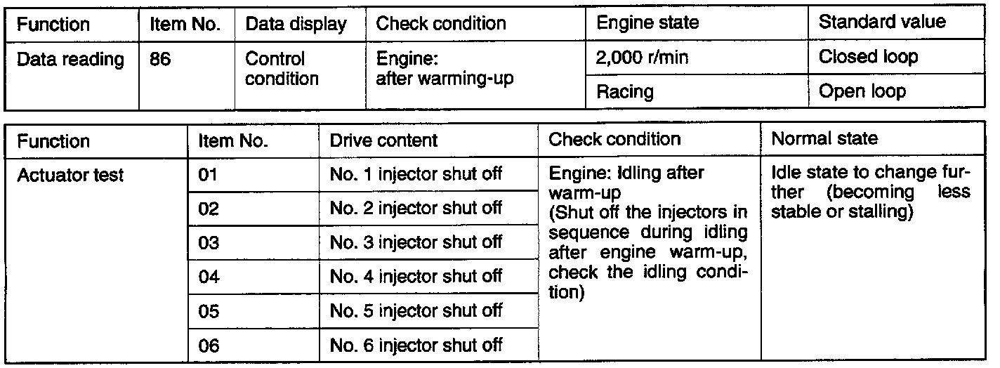 Hint 3: If there is any cylinder whose idle state remains unchanged when the fuel injection of injectors is cut one after another during idling, make following checks about such cylinder.