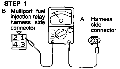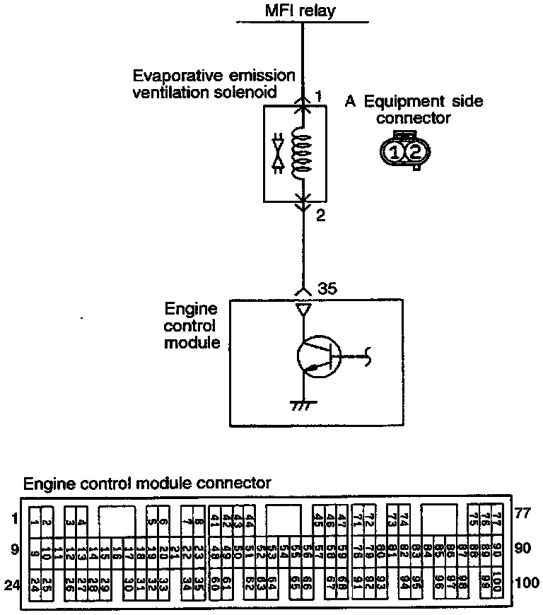 Check for continuity between evaporative emission ventilation solenoid and multiport fuel injection relay.