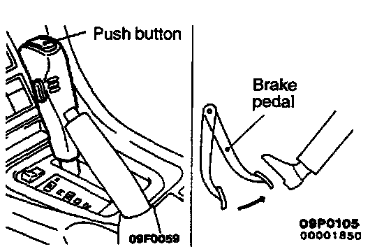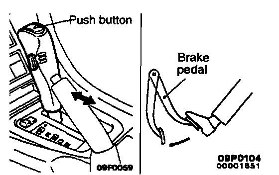 SHIFT LOCK MECHANISM CHECK1. Check to be sure that, under the following conditions, the selector lever cannot be moved from the "P" position to any other position.