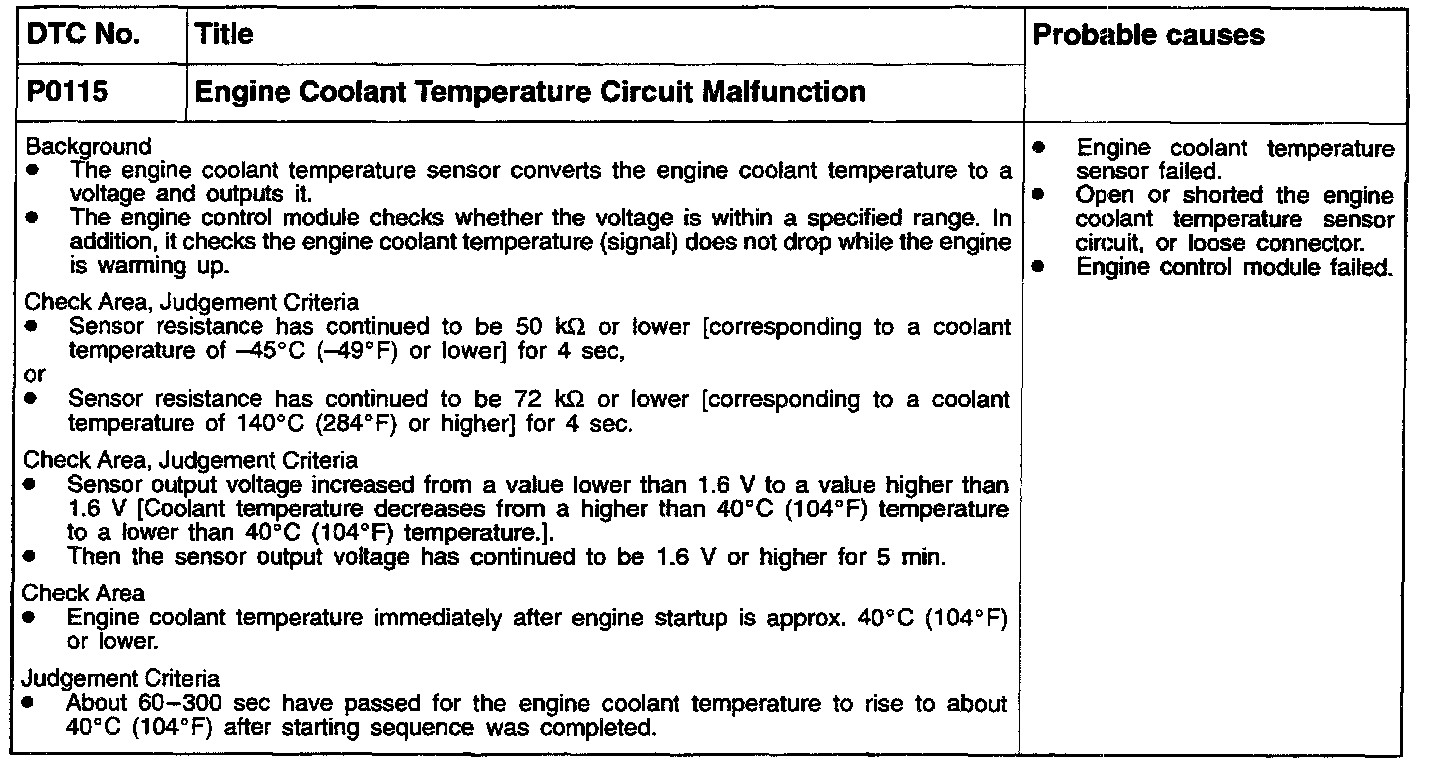 P0115 - Engine Coolant Temperature Sensor
