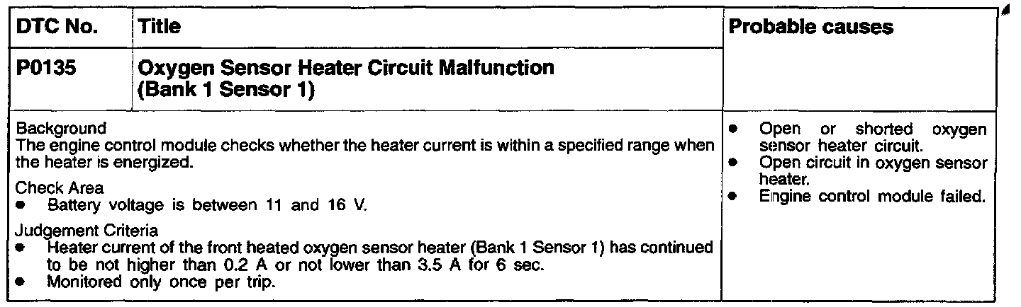 P0135 - Oxygen Sensor Heater Circuit (Bank 1, Sensor 1)