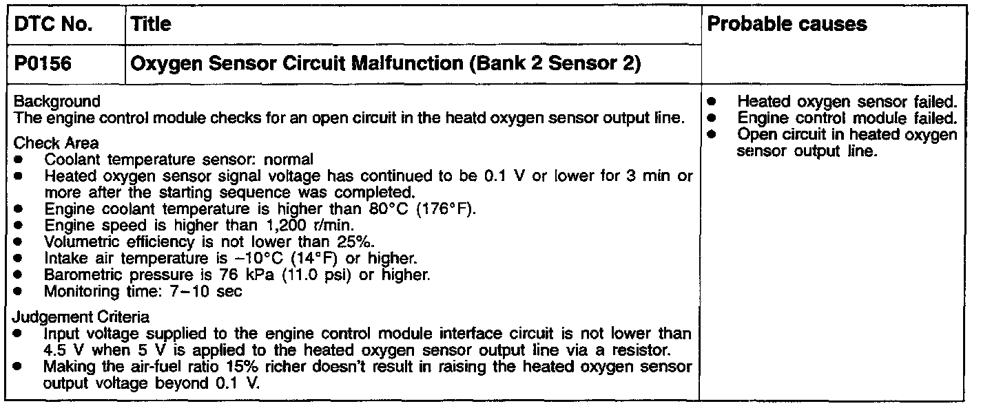 P0156 - Oxygen Sensor Circuit (Bank 2, Sensor 2)