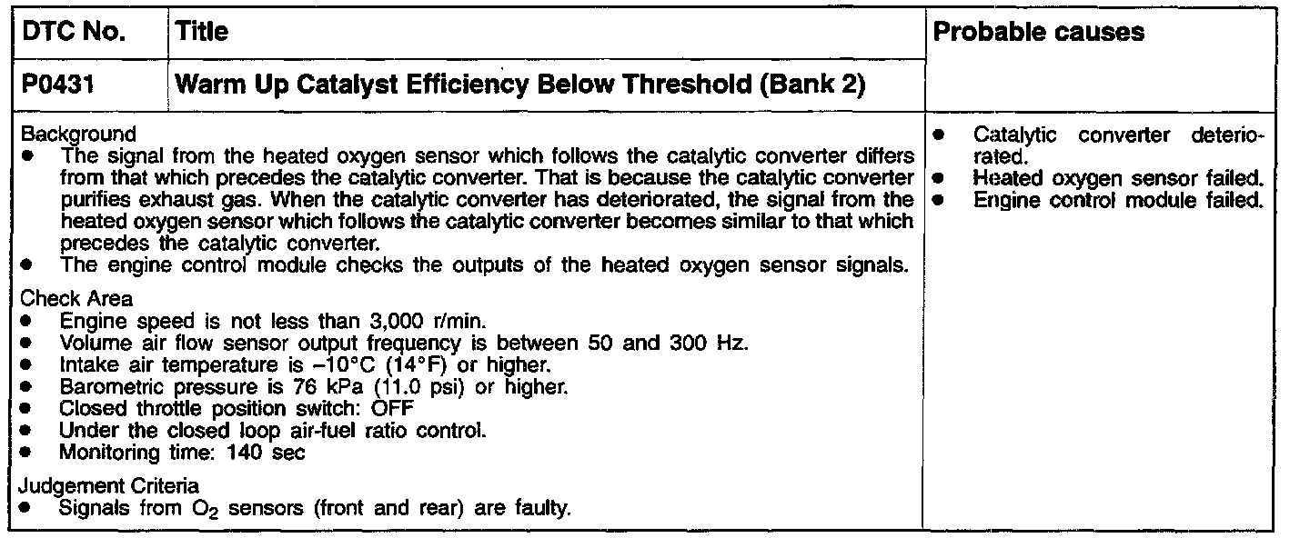 P0431 - Catalyst Efficiency Below Threshold (Bank 2)