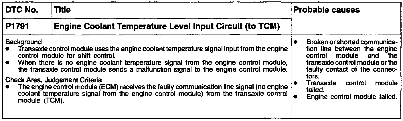 P1791 - Engine Coolant Temperature Input to Tcm