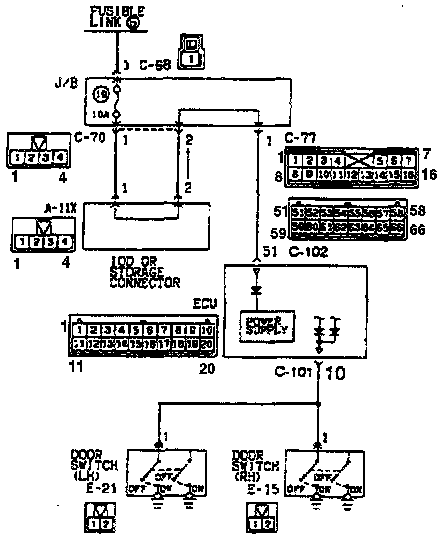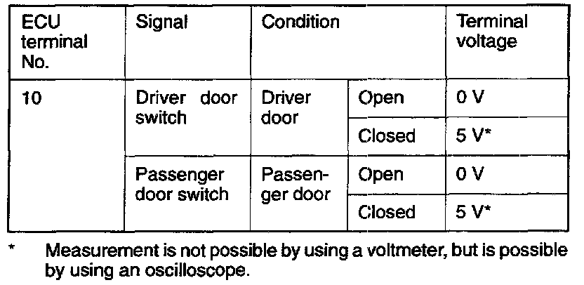 When the door is closed (the door switch is switched OFF), HIGH-level signals are sent to the ECU: