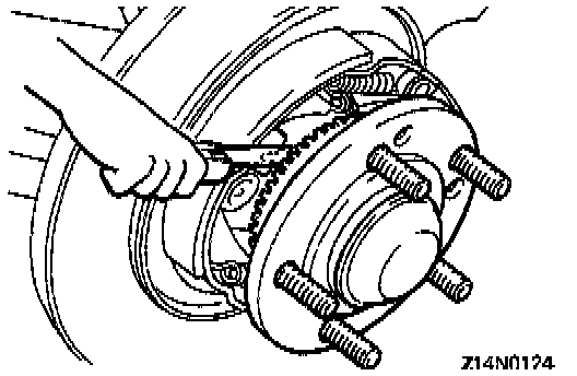 CAUTION: Do not damage ABS rotor teeth and never drop the ABS rotor. If the ABS rotor has missing teeth or is deformed, accurate wheel speed detection cannot be expected and the system may fail to function normally.