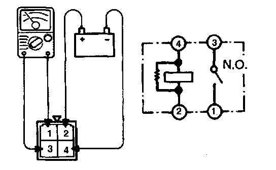 Apply battery power to terminal (2) and connect terminal (4) to the ground. Check for continuity across the terminals.