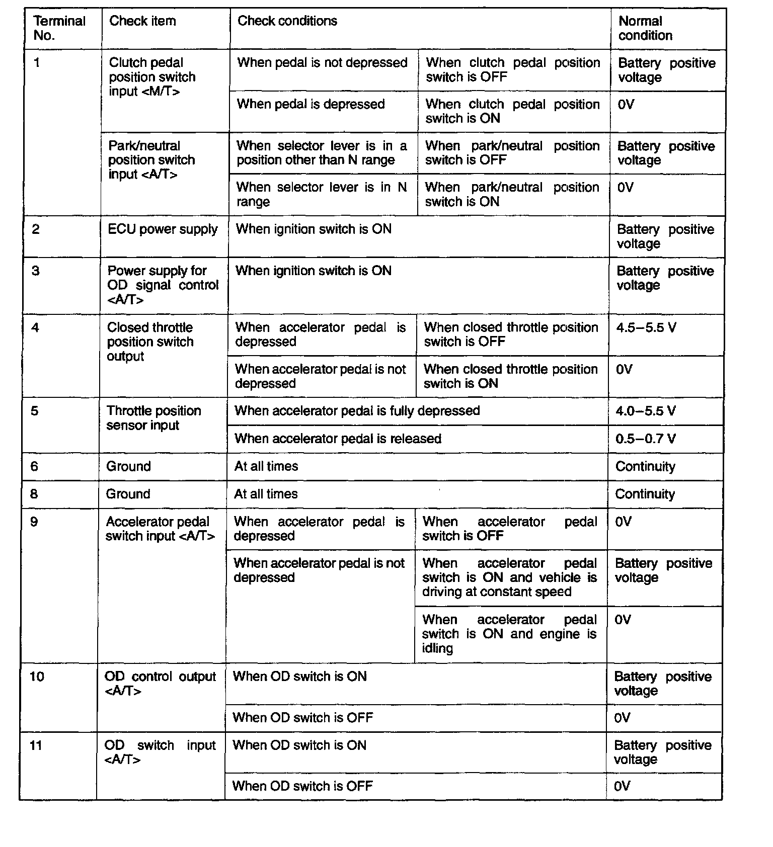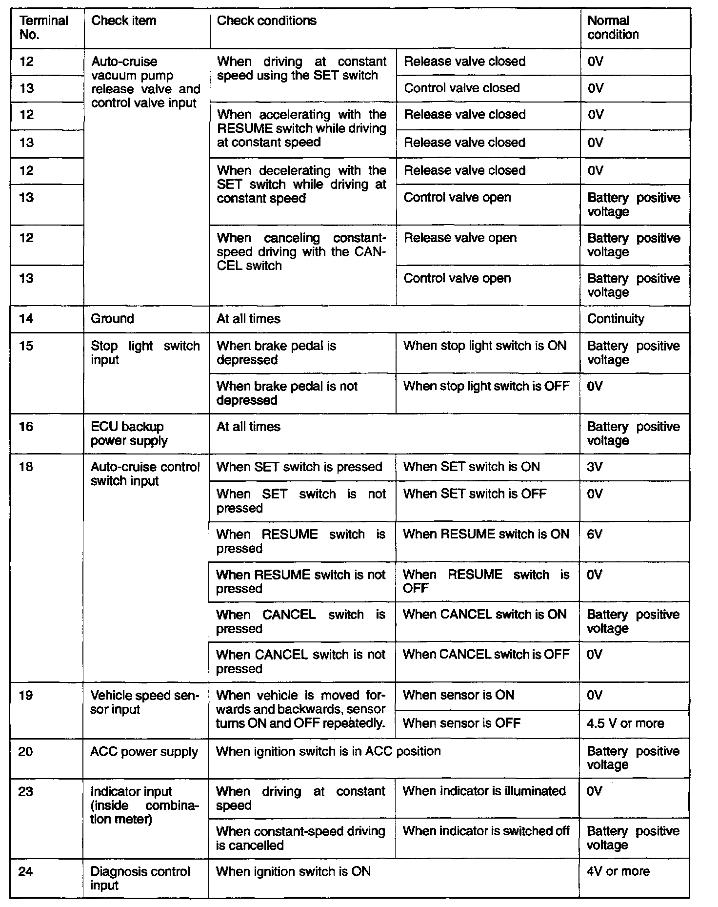 Pinout Values and Diagnostic Parameters
