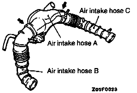 Assemble the air intake hose A with its notches (arrow-marked) lined up with the marks on the air intake hoses B and C.
