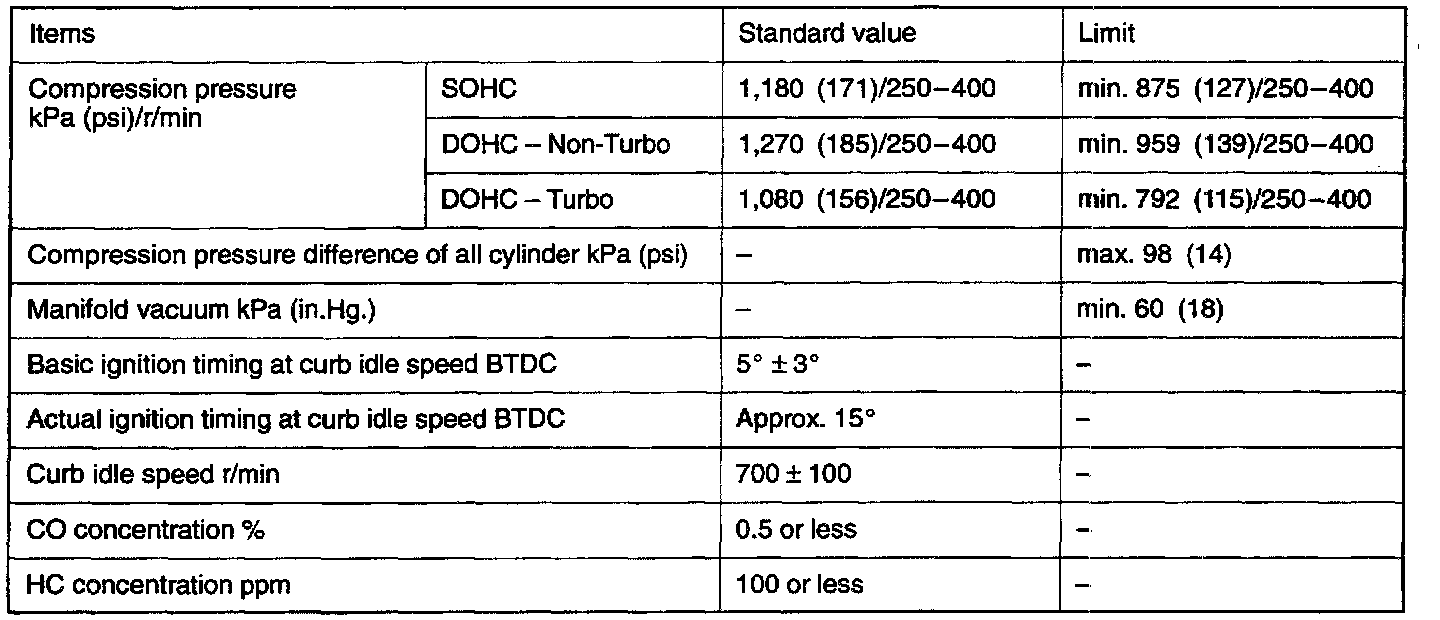 Engine-On Vehicle Service Specifications