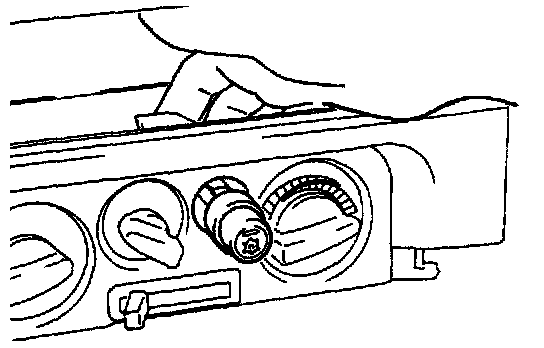 Remove the center air outlet assembly, and insert hand to the back of the cluster panel assembly through the produced opening. Push it toward you for removal.