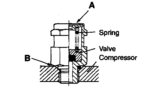 2. If a leak is detected at section B, retighten the valve. If the leak still persists after retightening the valve, replace the packing.