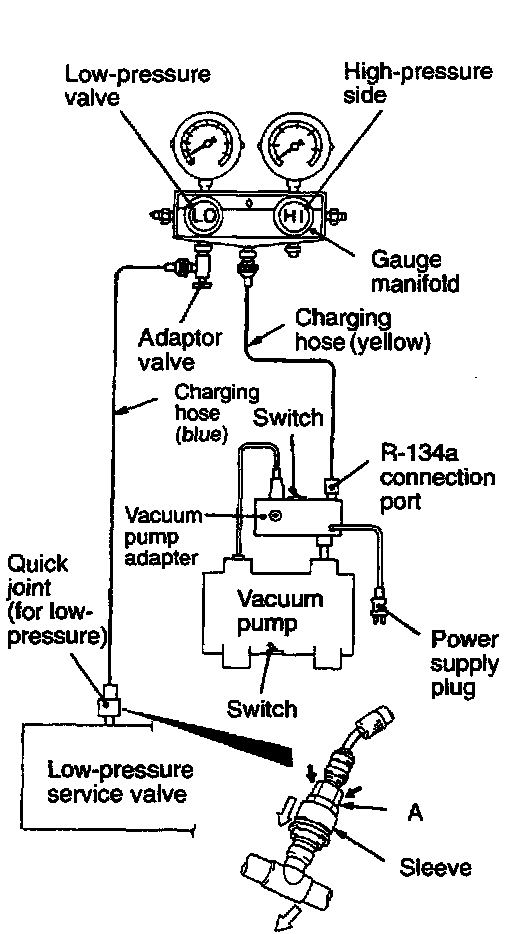 12. Turn the vacuum pump adaptor switch to the R-134a side to start the vacuum pump.