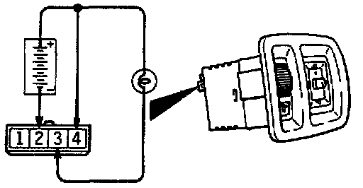 2. Connect the battery and a test bulb (40 W) as shown in the figure.