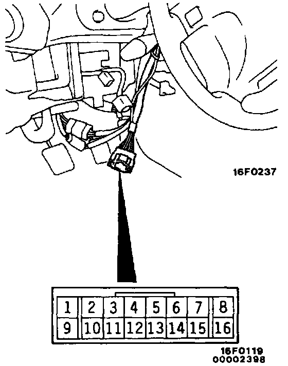 2. Disconnect the column switch left connector (16 terminals) and check the continuity between the terminals for each switch.