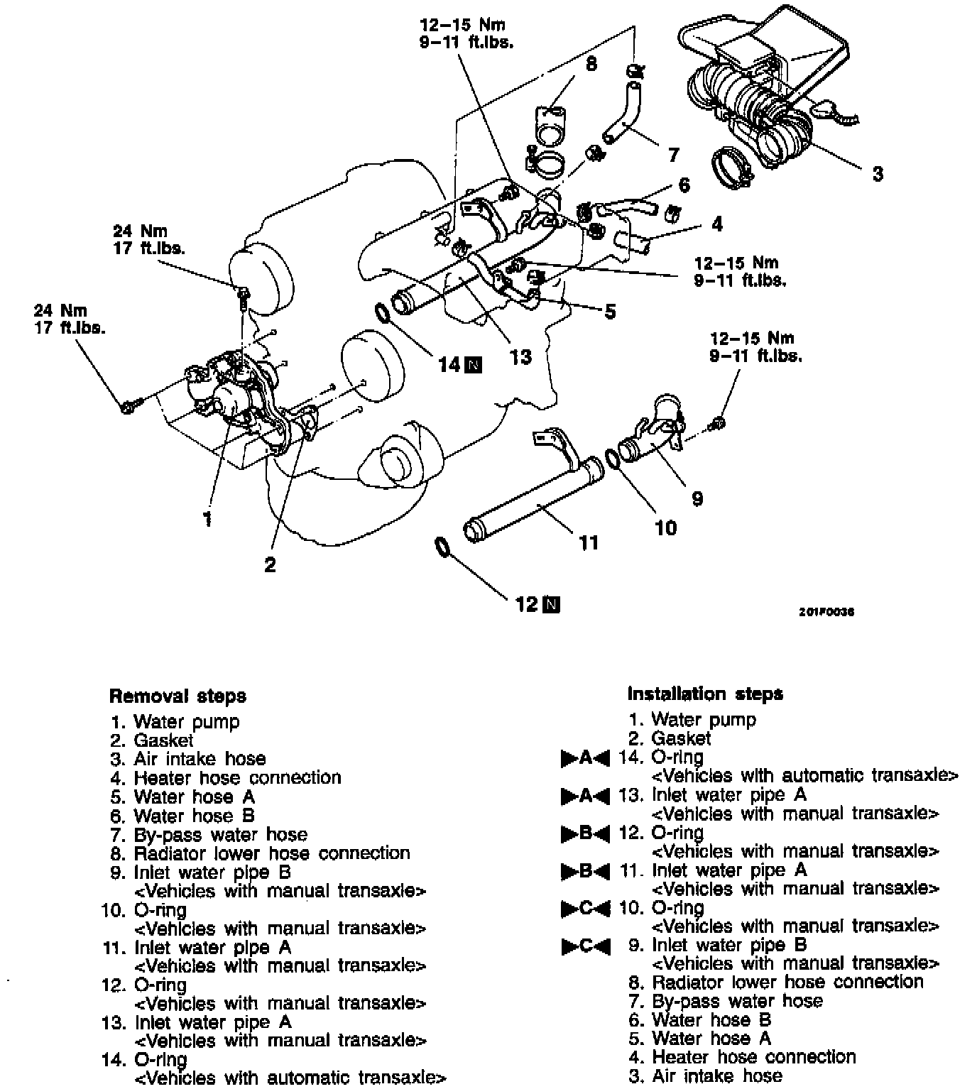]C[ O-ring / Inlet Water Pipe B Installation.