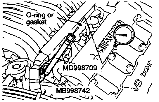 (3) Set a fuel pressure gauge on the special tool, placing an adequate O-ring or gasket between the gauge and special tool prevent fuel leaks.