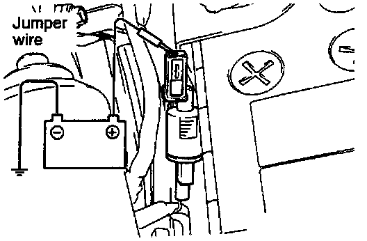 (1) Apply battery voltage to the terminal for activation of the fuel pump so as to activate the fuel pump.