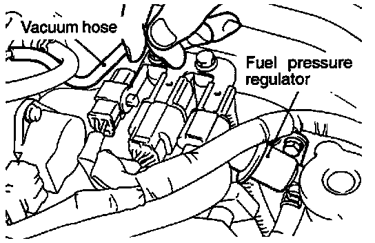 (9) Disconnect the vacuum hose from the fuel pressure regulator and then measure the fuel pressure while using a finger to plug the end of the hose.