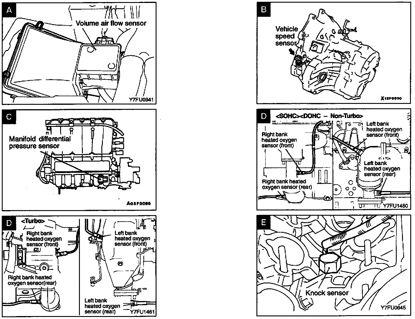 Sensor Locations Views A-E: