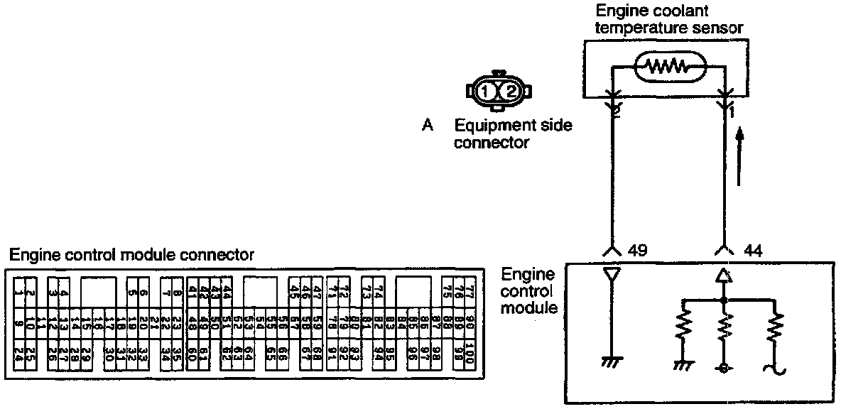 - The 5 V power in the engine control module is supplied via a resistor in the module to the engine coolant temperature sensor. Through the sensor which is a kind of resistor, it is grounded in the engine control module. The engine coolant temperature sensor resistor has the characteristic of decreasing its resistance decreases as the coolant temperature rises.