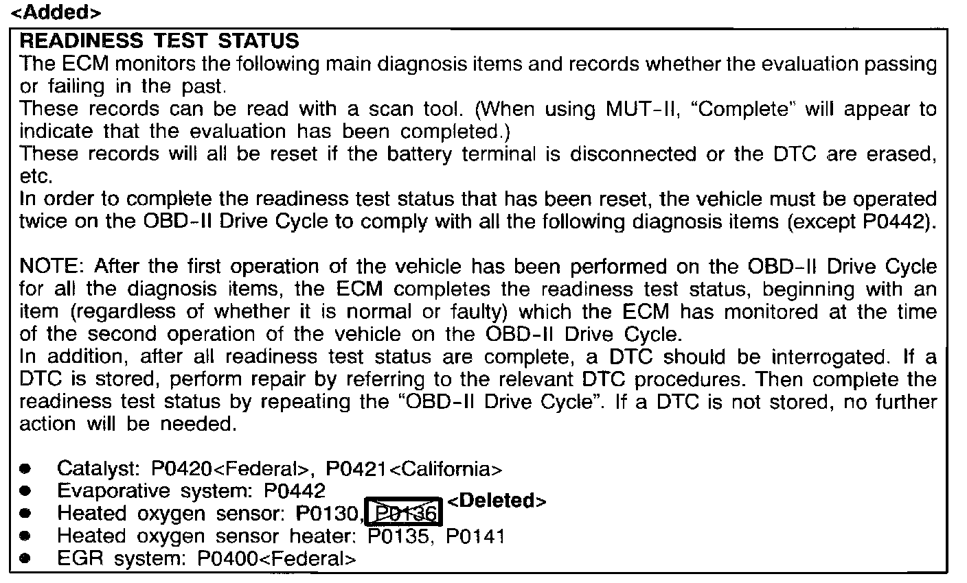 Emissions/Engine Controls - Readiness Test Updates