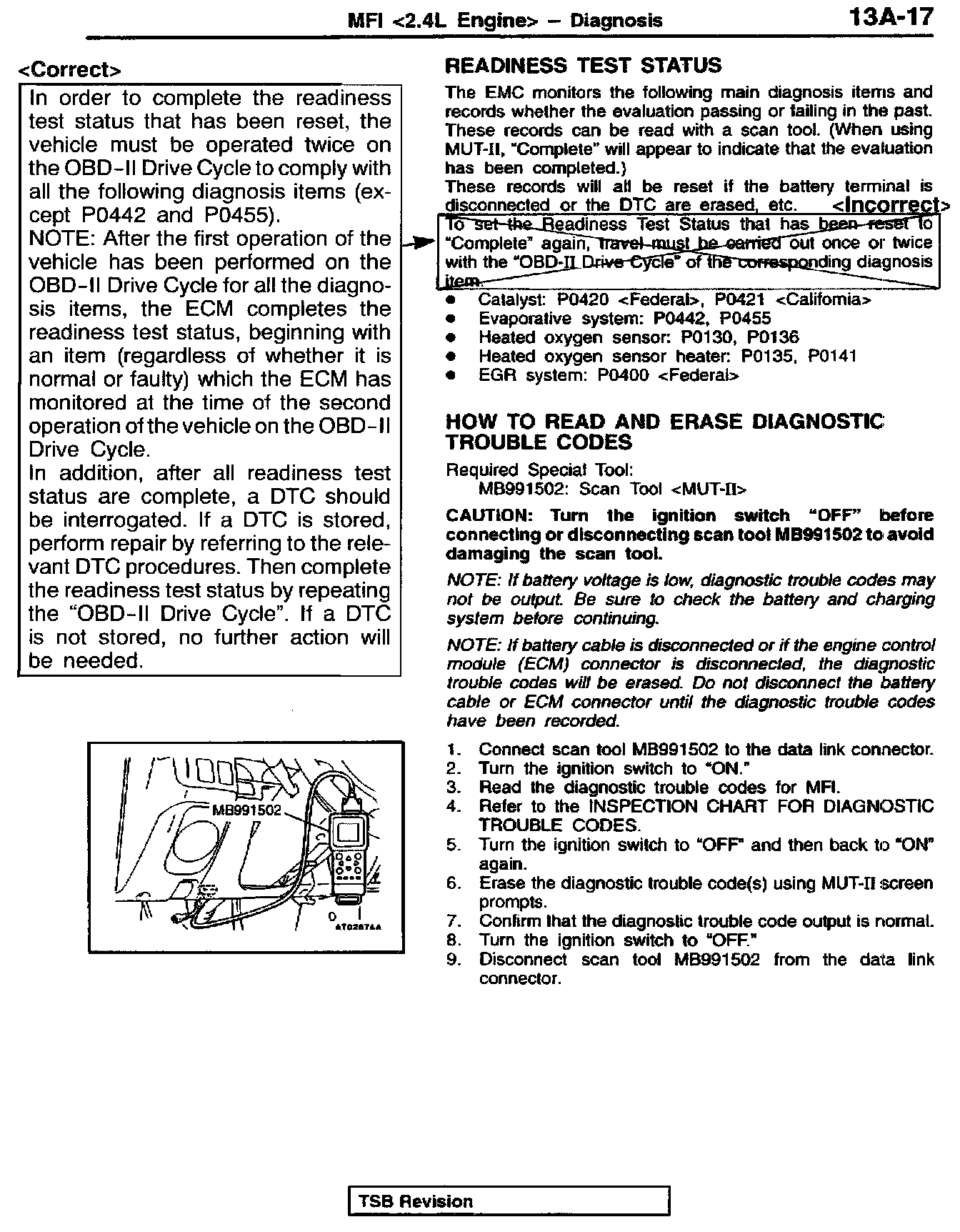 1998 Montero Sport, Volume 1, Page 13A-17 Correct the Readiness Test Status statement as shown.