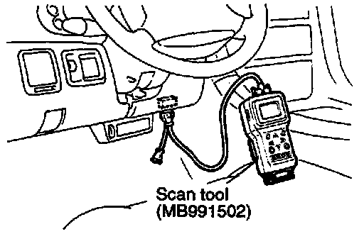 (3) Be sure to connect or disconnect the scan tool with the ignition switch turned off. If the scan tool is disconnected with the ignition switch placed in the ON position, ABS diagnostic trouble code may be stored and ABS warning lamp turned on.
