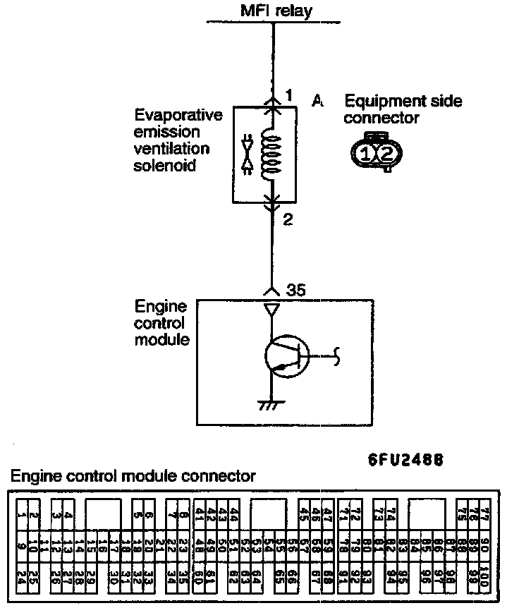 - Through the MFI relay the battery power is supplied to the evaporative emission ventilation solenoid. If the ECM switches on the power transistor in the module, the current flows in the coil and close the EVAP canister atmospheric release opening.