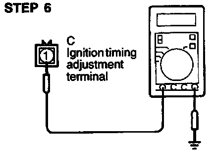 Measure the voltage of the ignition timing adjusting terminal.