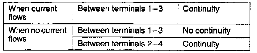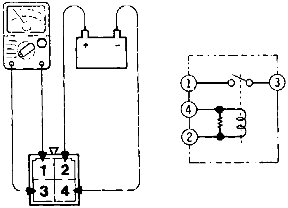 (2) Check for continuity between the terminals when the battery power-supply is applied to terminal (2), and terminal (4) is grounded.