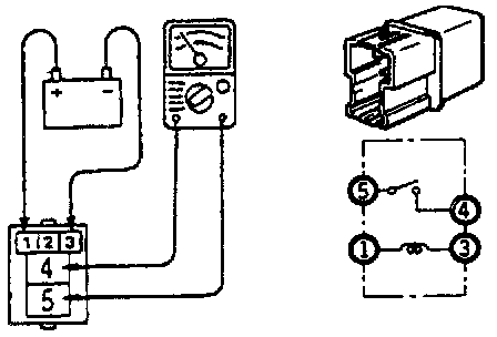 Connect battery to terminal 1 and check continuity between terminals with terminal 3 grounded.