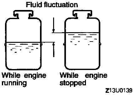 4. Check the difference of the fluid level when the engine is stopped, and while it is running. If the fluid level changes considerably, air bleeding should be done.