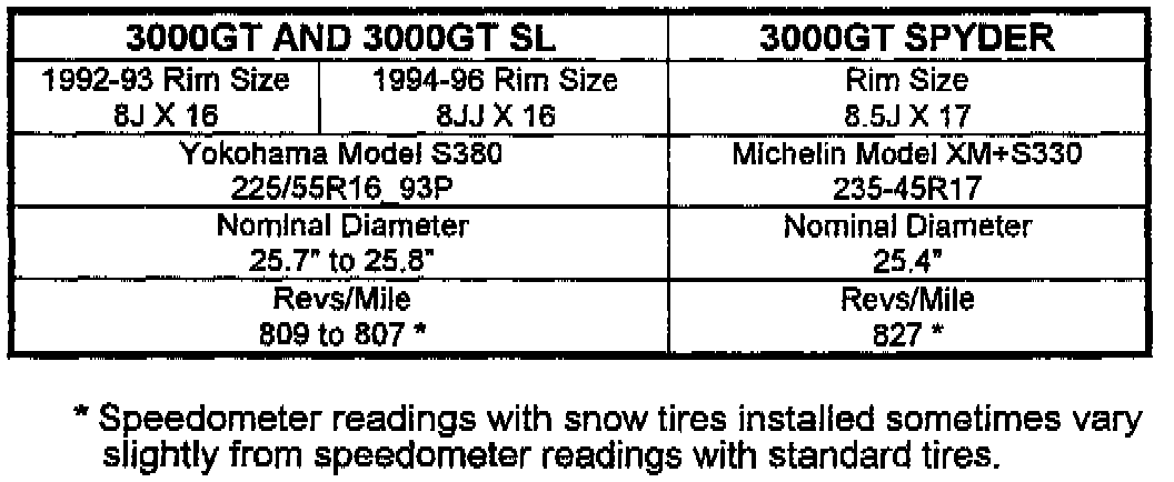 Snow tires for affected vehicles are available from Yokohama and Michelin. This Technical Service Bulletin lists recommended snow tires for these vehicles. Snow tires are not currently available for the 3000GT VR-4 model.