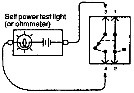 2. When the switch is in the ON position, the self power test light should come on or the ohmmeter should read 0 ohm only when the terminals 3 and 4 are interconnected.