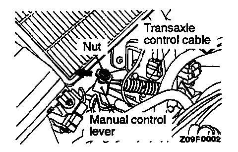 1. Connect the transaxle control cable to the manual control lever and tighten the nut temporarily.