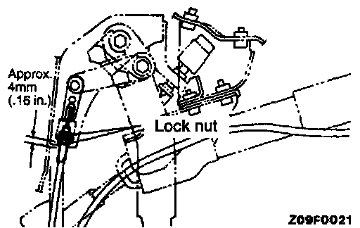 Connect the shift lock cable so that its, threads measure about 4 mm (0.16 inch).