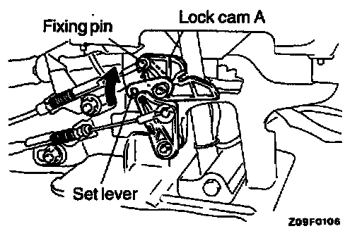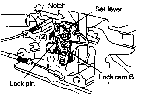 4. Fit the cutout in set lever to the lock pin of lock cam B.