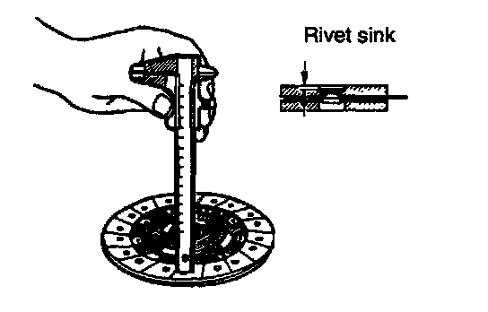 - Measure the rivet sink and replace the clutch disc if it is out of specification.