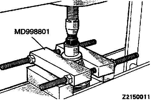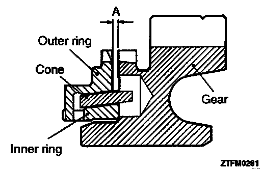 3. Install the outer ring, inner ring and cone, and press them onto the clutch gear. Check clearance "A", and replace if "A" is below the limit value.