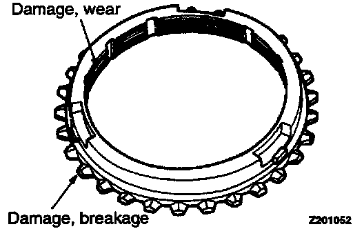 2. Check the synchronizer cone for rough surface, damage and wear.