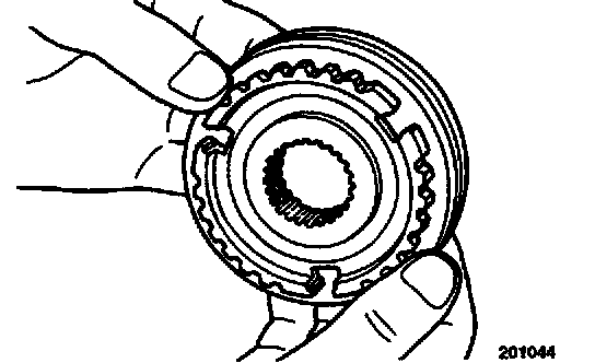 1. Combine the synchronizer sleeve and hub and check that they slide smoothly.