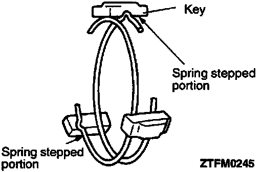 1. When installing the synchronizer springs, be sure to position each spring with respect to the keys as illustrated.