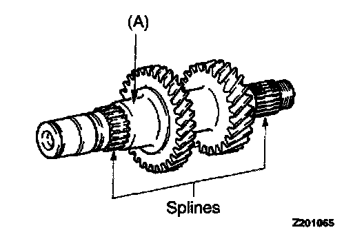 1. Check the outer surface of the intermediate gear where the needle bearing is mounted for damage, abnormal wear and seizure [portion (A)].