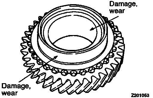 2. Check the gear bore and front and rear ends for damage and wear.